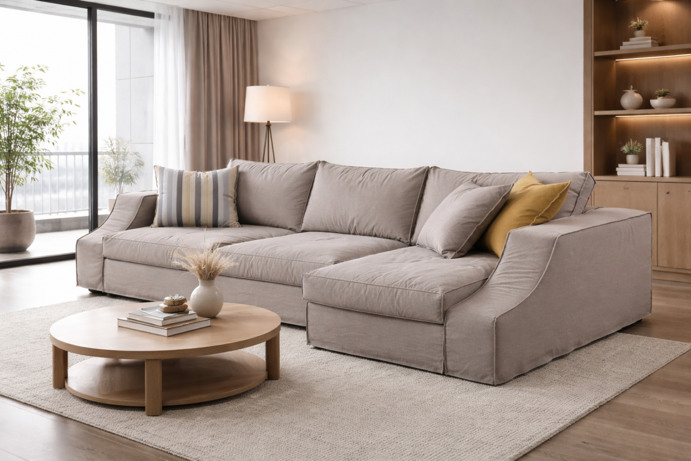 Ο γωνιακός καναπές Sabbia αποτυπώνει τη σύγχρονη άνεση μέσα από έναν χαλαρό, minimal σχεδιασμό με φυσική κομψότητα. Οι μαλακές γραμμές, το χαμηλό προφίλ και τα πλούσια μαξιλάρια δημιουργούν μια αίσθηση ζεστασιάς και οικειότητας που ταιριάζει ιδανικά σε cozy και μοντέρνους χώρους.