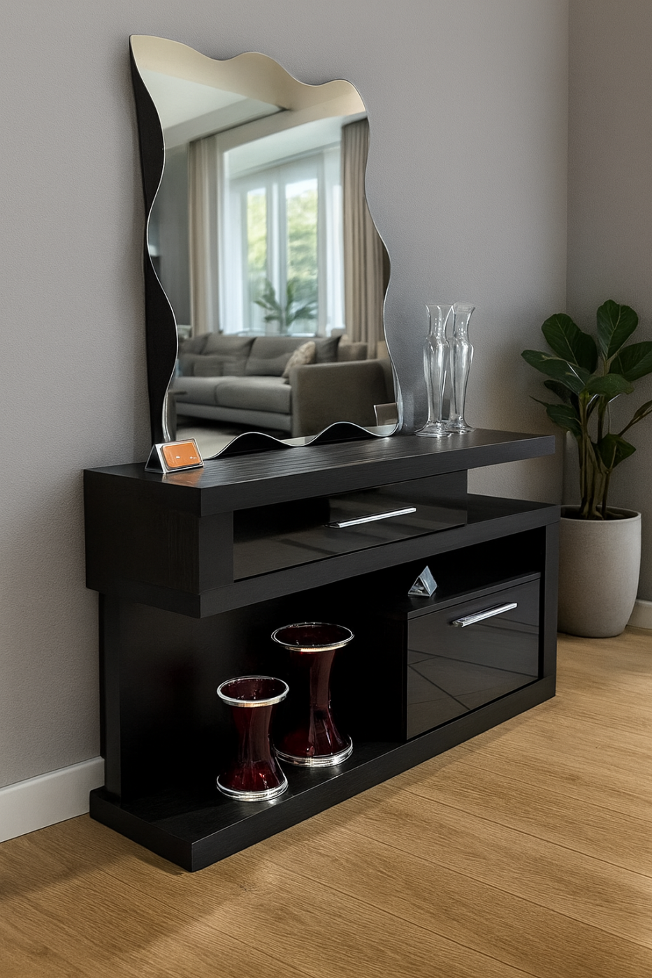 Κατασκευασμένο απο ξύλο δρύς σε συνδιασμό γυαλιστερής μαύρης λάκας
