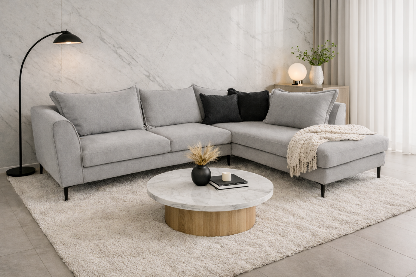 Αναβαθμίστε το καθιστικό σας με έναν καναπέ που συνδυάζει σύγχρονη αισθητική, άνεση και διαχρονική κομψότητα. Ο γωνιακός καναπές σε σχήμα L με δεξιά σεζλόνγκ είναι σχεδιασμένος για να προσφέρει απόλυτη χαλάρωση, διατηρώντας παράλληλα ένα minimal, luxury ύφος.