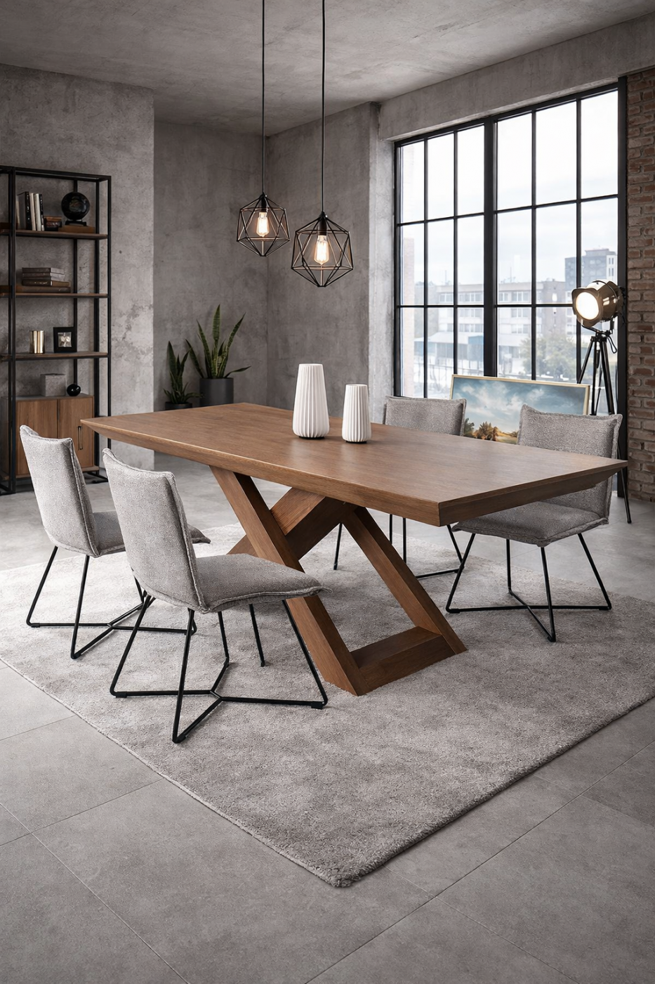 Η τραπεζαρία Loom εκφράζει τη σύγχρονη industrial αισθητική μέσα από καθαρές γεωμετρίες και στιβαρή κατασκευή. Το επιβλητικό καπάκι σε φυσική απόχρωση ξύλου συνδυάζεται αρμονικά με τη χαρακτηριστική Χ βάση, δημιουργώντας ένα δυναμικό αλλά ισορροπημένο αποτέλεσμα.