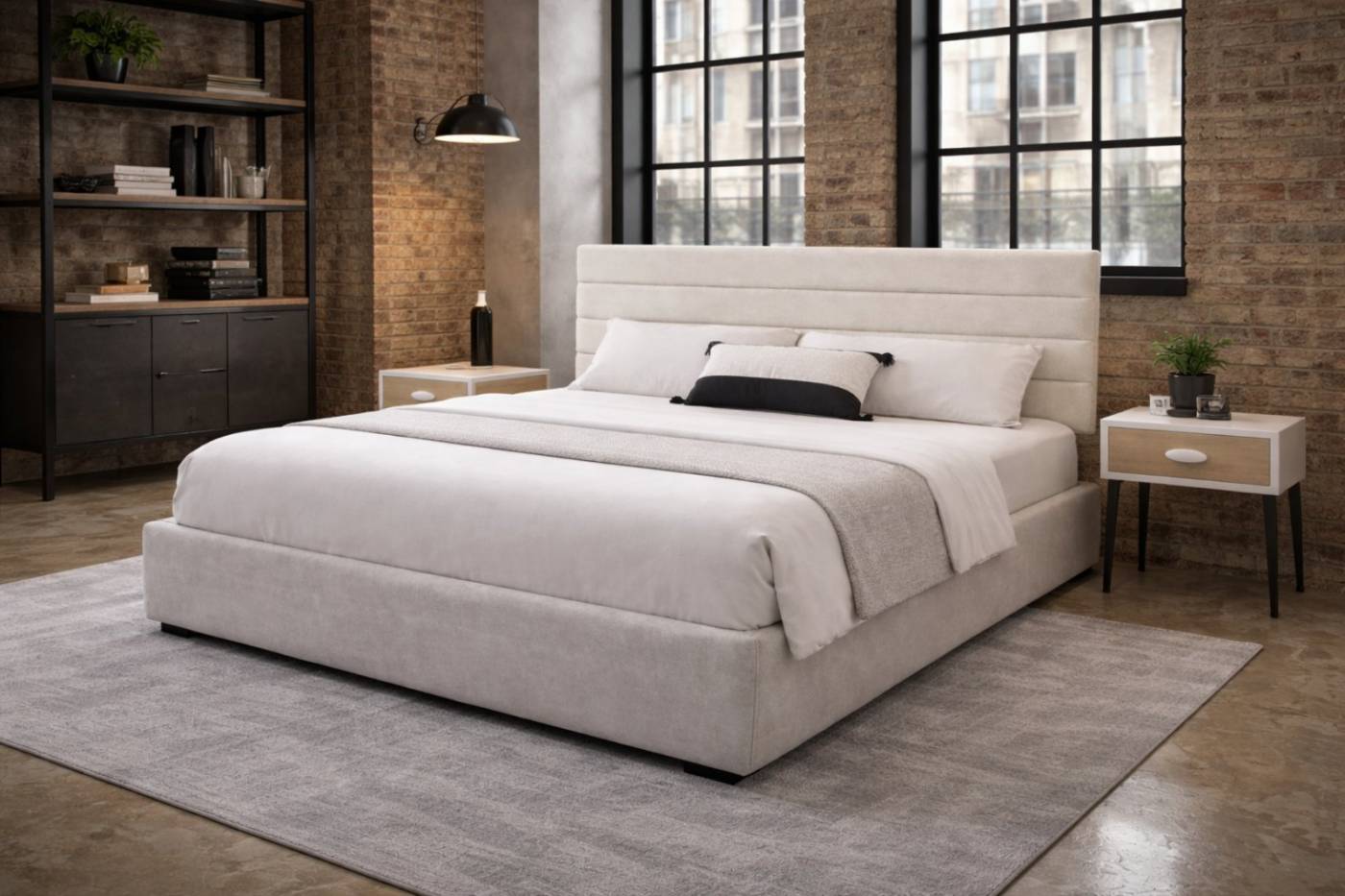 Το κρεβάτι ONYX αποτυπώνει τη σύγχρονη minimal αισθητική με καθαρές οριζόντιες γραμμές και επιβλητική, αλλά διακριτική παρουσία. Το ψηλό, επενδυμένο κεφαλάρι με οριζόντιες ραφές δημιουργεί ισορροπία και αρχιτεκτονικό χαρακτήρα, ενώ η πλήρως ντυμένη βάση προσφέρει στιβαρότητα και κομψότητα.
